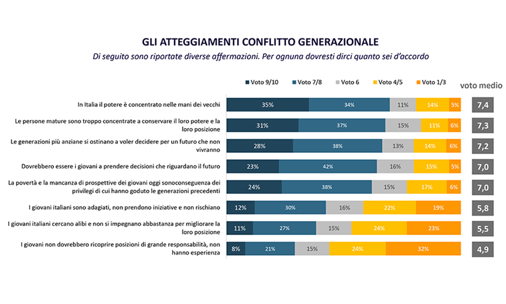 Secondo l'Osservatorio GenerationShip realizzato da Gruppo Unipol in collaborazione con Kienn, la relazione fra giovani e meno giovani non è conflittuale ma neanche idilliaca: permangono tensioni alimentate dalla narrazione mainstream che vede il Paese dominato dalle generazioni mature.