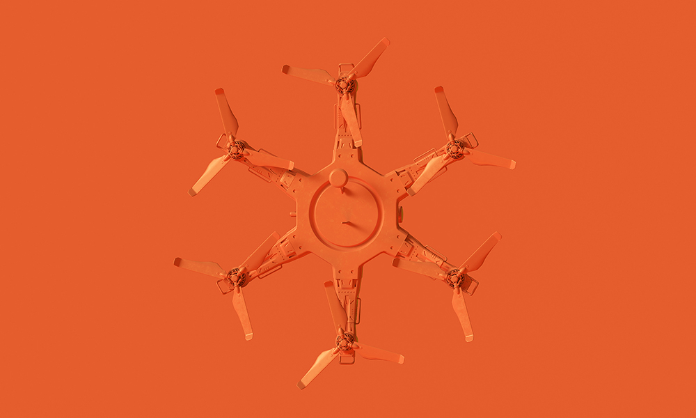 Orange Unmanned Aerial Vehicle Drone with a Machine Gun 3d illustration 3d render